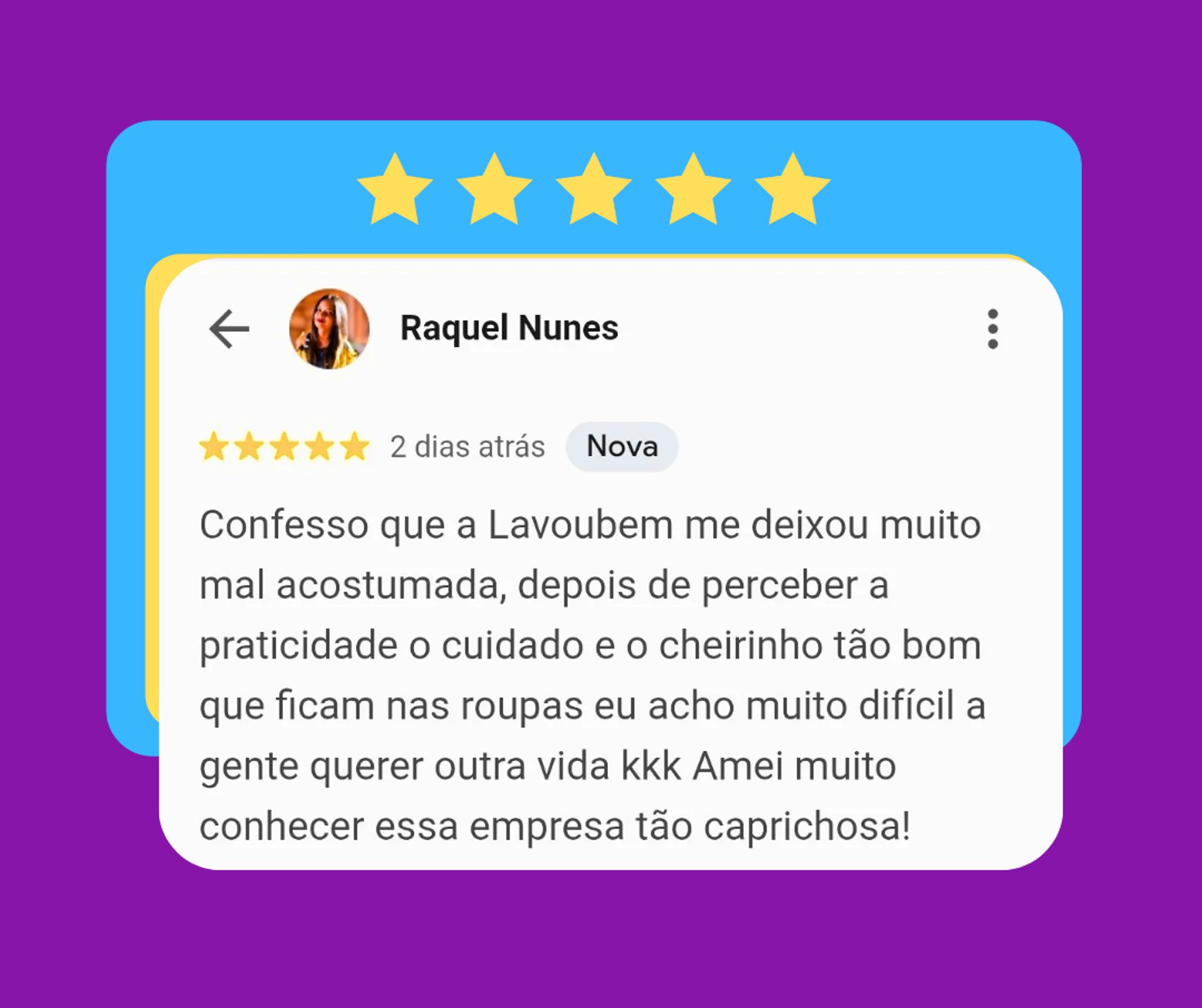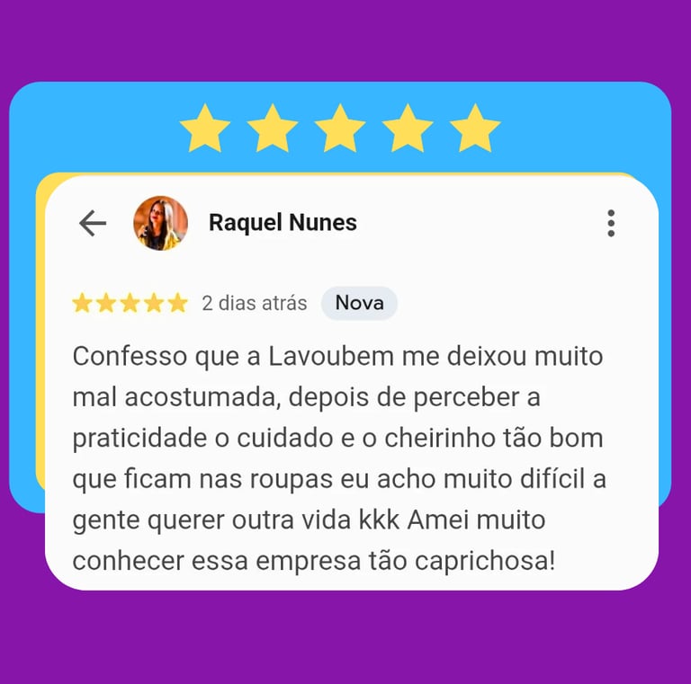 A lavanderia lavoubem é incrível! Sempre saio satisfeito com minhas roupas impecáveis e cheirosas.