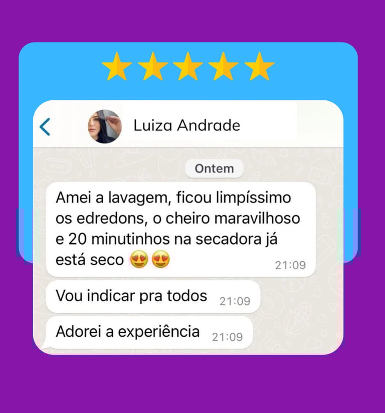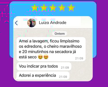 Minhas roupas nunca estiveram tão limpas e cheirosas! Serviço rápido e eficiente, recomendo muito.