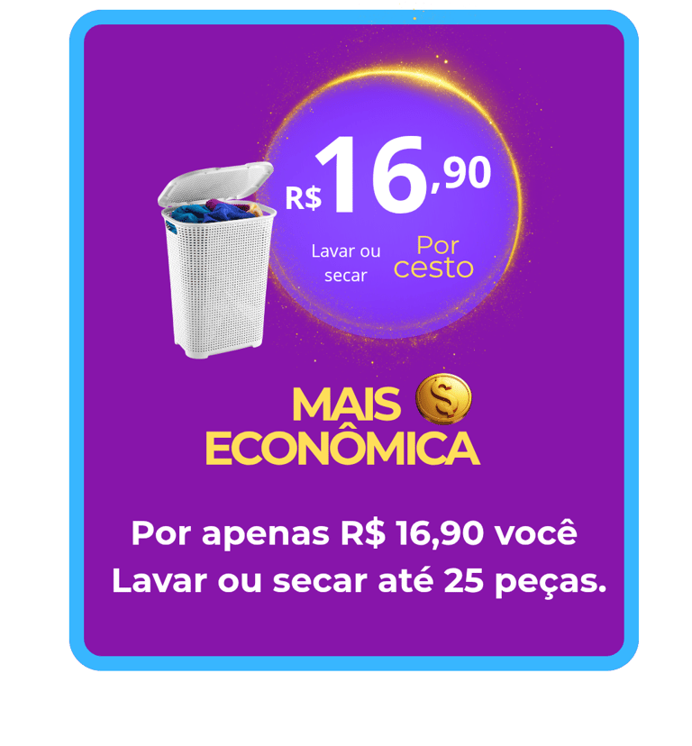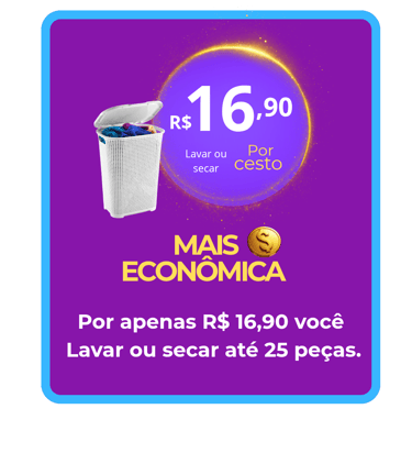 Por apenas R$16,90 você lava ou seca até 25 peças