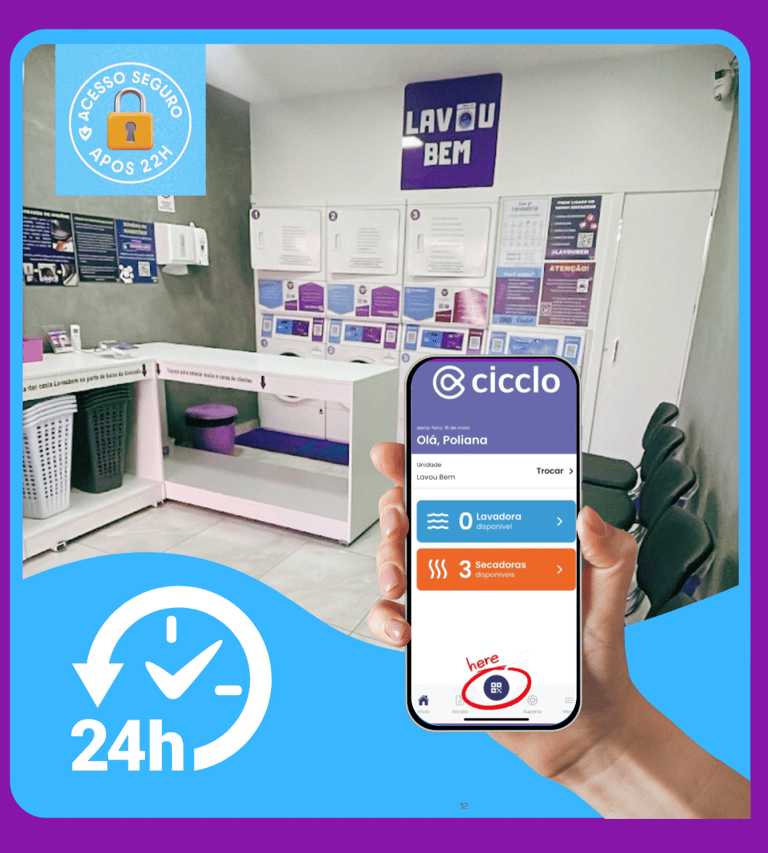 Funcionamos todos os dias, 24 horas por dia. Contamos com segurança e controle de acesso pelo app entre 22h e 6h.